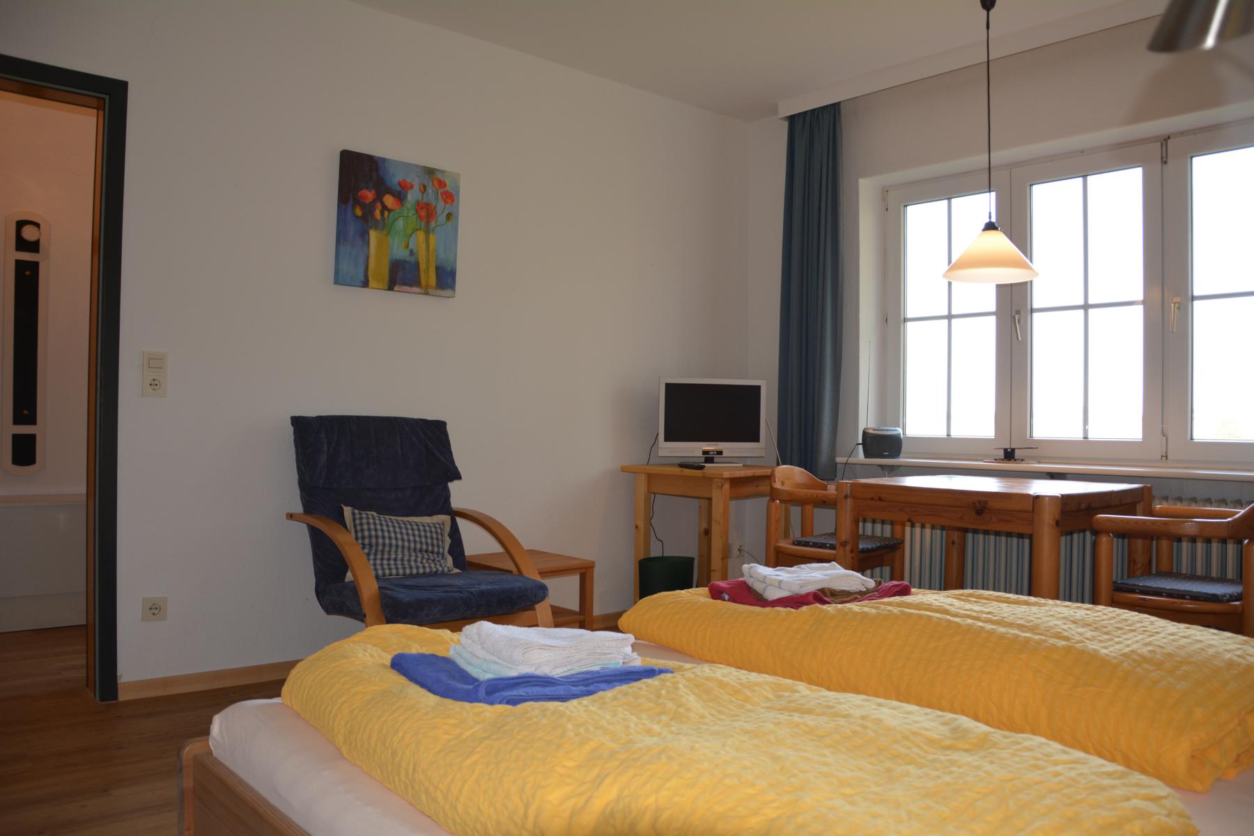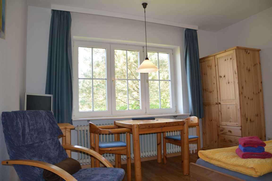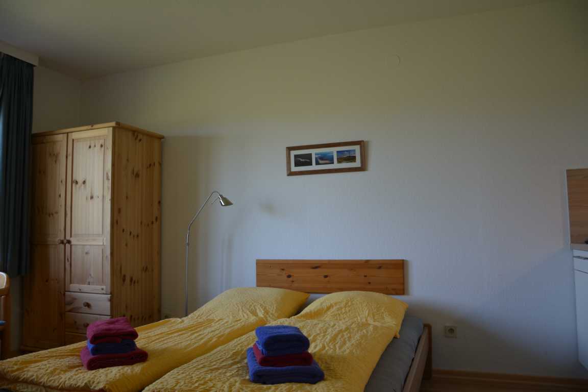Unser Appartement 4 ist ein kleines aber sehr helles 1 Raum-Appartement. Sie haben einen sehr schönen Blick Richtung Nebel auf die Amrumer Mühle.